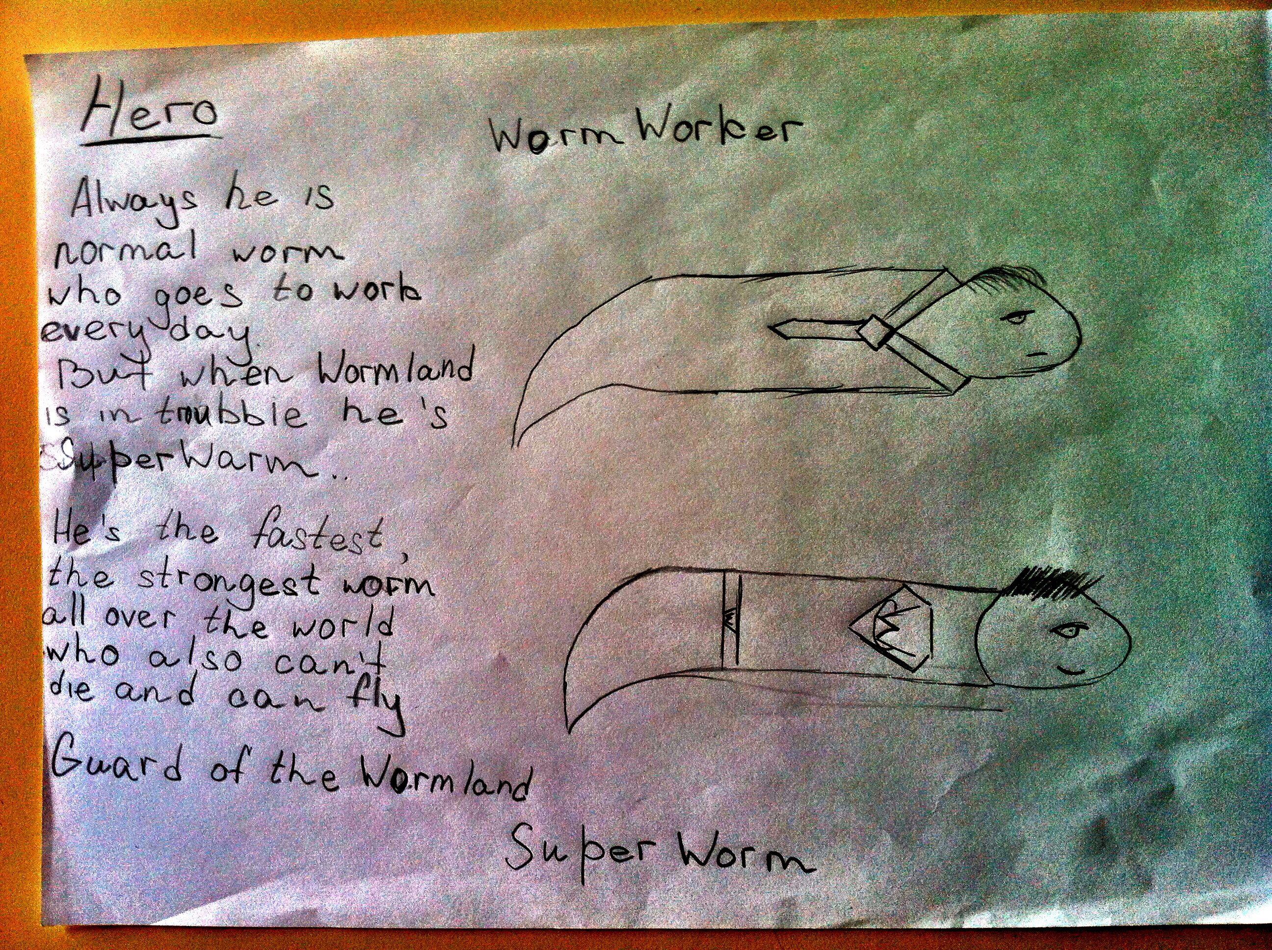 “Always he is normal worm who goes to work everyday. But when Wormland is in trubble, he’s Superworm.